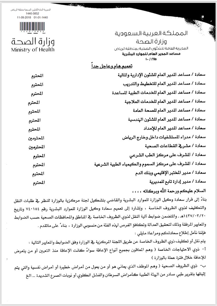 صريح On Twitter موظفي الصحه E Mohcom التشغيل الذاتي Moh Staff جديد بشان الية وشروط وضوابط ومواعيد النقل والتكليف لذوي الظروف الخاصة Https T Co Mvikltt1zd