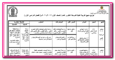 توزيع منهج التربية الفنية لمرحلة التعليم الثانوى 2020