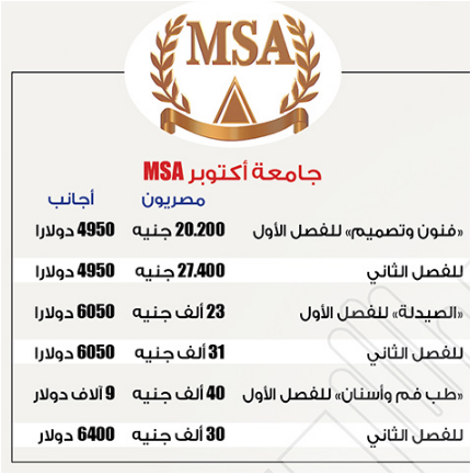 تنسيق ومصاريف جامعة أكتوبر للعلوم الحديثة والآداب Msa 2020 2019